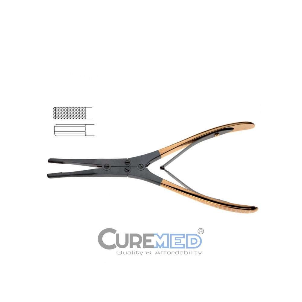 CureMed’s Brand New Gorney Septal Morselizer Features One jaw that has a tungsten carbide insert to crush and reform cartilage into tissue for repositioning. The other jaw longitudinally cuts the cartilage without spreading. Overall length 8-1/2″ (21.6 cm) The guard gives the surgeon the option to either cut or crush the cartilage. Handcrafted With German Stainless Steel with Tungsten carbide Jaw that provides a firm nonslipping surface and enhances the service life.