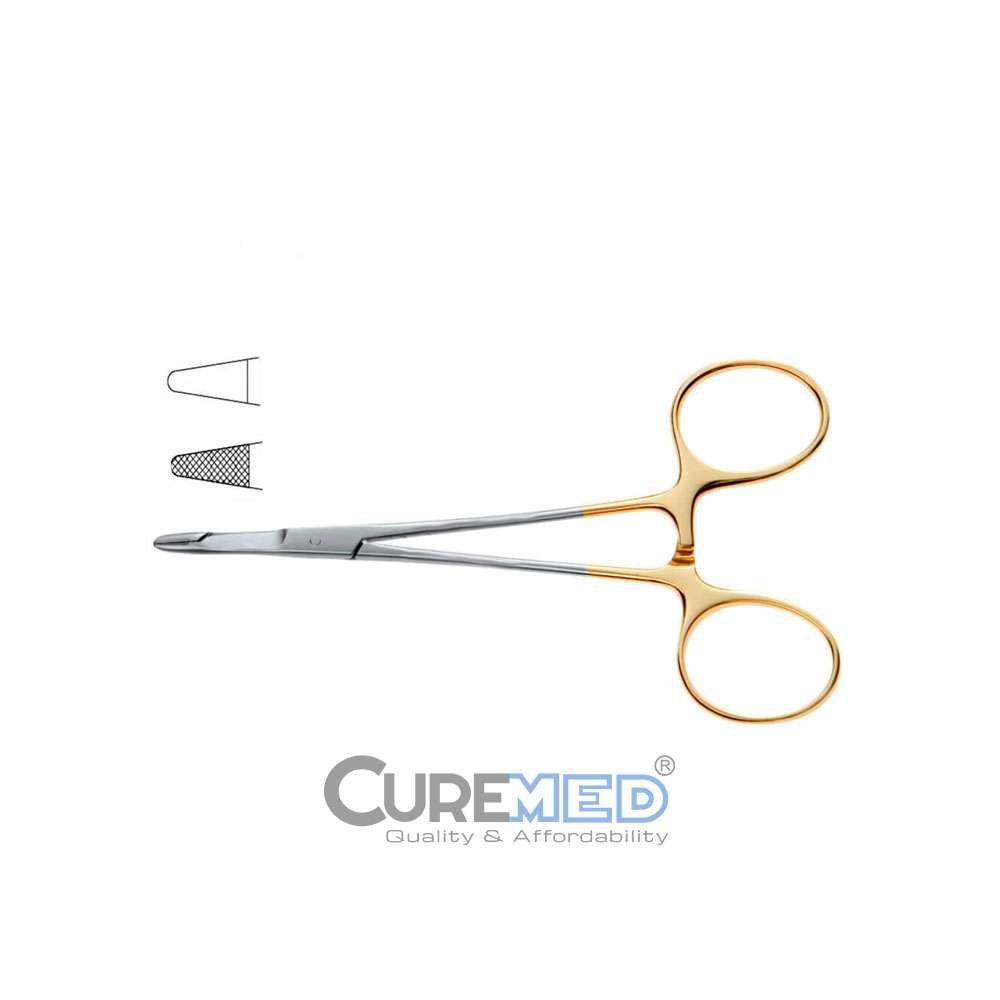 CureMed’s Brand New Olsen Webster Needle Holder and Scissors are handcrafted from German stainless steel and tungsten carbide inserts that provides control, precision and a dependable non-slip crosshatched surface. Use with 5-0 or finer suture, 4 1/2″ (11.5cm) overall length. Features a scissor built into the jaw for a two-in-one combination. Delicate jaws are available in smooth or serrated while the combination construction allows for suturing and suture cutting without changing instruments. Tungsten carbide jaws are inherently more durable, long lasting and Surgeons will experience an extended service-life.