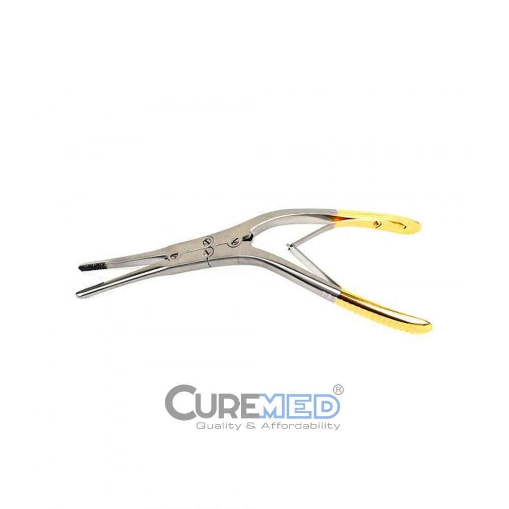 CureMed’s Brand New Rubin Septal Morselizer Forceps Features double-action design, deeply serrated jaws, supplied w/ 1 slip-on guard, 17.0 mm x 5.0 mm and overall length is 8″ (20.3 cm) used in nasal constructive and rhinoplasty procedures. The double-action deeply serrated jaws enter the nostril on both sides of the septum and masticate the septal cartilage simultaneously. The slip-on guards are meant to reduce damage to surrounding tissue. Handcrafted With German Stainless Steel with Tungsten carbide Jaw that provides a firm Gripping surface and enhances the service-life. Rubin Septal Morselizer Comes protected by CureMed’s Lifetime Warranty.